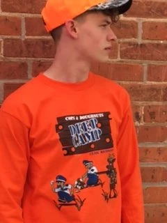 “Deer Camp” Cops & Doughnuts screen print on front of this long sleeve shirt.